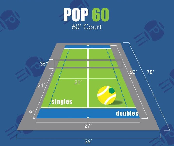 What is POP Tennis?POP Tennis (short for POPular tennis), is tennis played on smaller courts with paddle rackets, lower compression tennis balls (green) and with the same scoring and rules as normal tennis, except that players only get one underhand serve.Benefits of POP Tennis:- Playing on a smaller court means less distance to cover and as a result less running and ** wear and tear** on the back, legs, feet and shoulders.- Rallies are generally longer and there is more fun and exciting net play and (net) poaching.- Increased hand speed/quickness and develops faster hand/eye coordination. Your reflexes and reaction time will be quicker, so that you will feel as if you have far more time to react, move toward, and hit the ball.POP Tennis can significantly improve your tennis game.