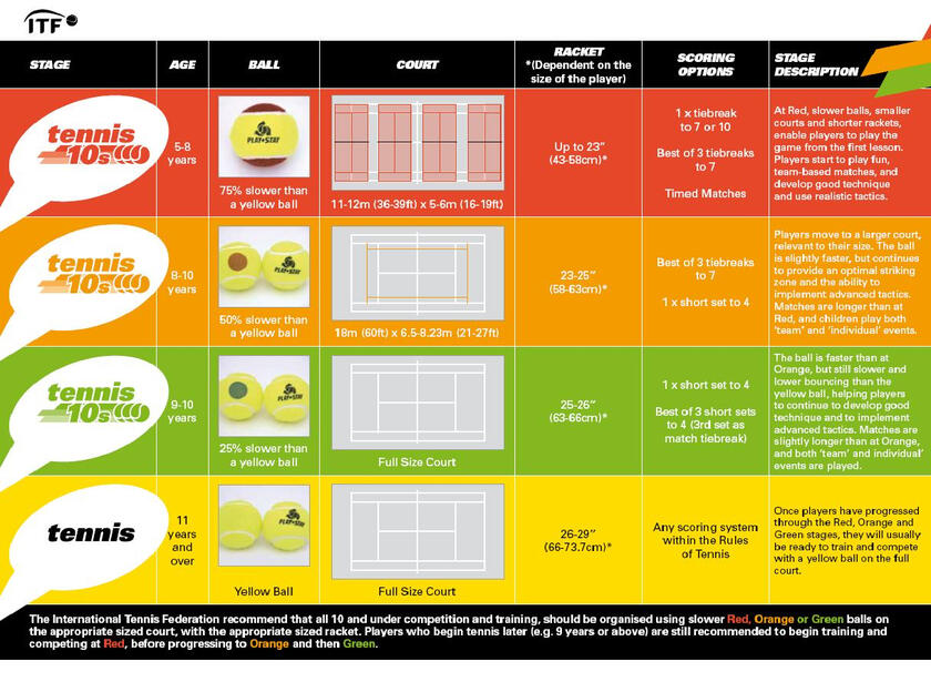 1 Coach : 6 PlayersThe aim of this programme is to establish a technical, tactical and fitness base for aspiring tennis players using green-dot balls.Learning Outcomes: